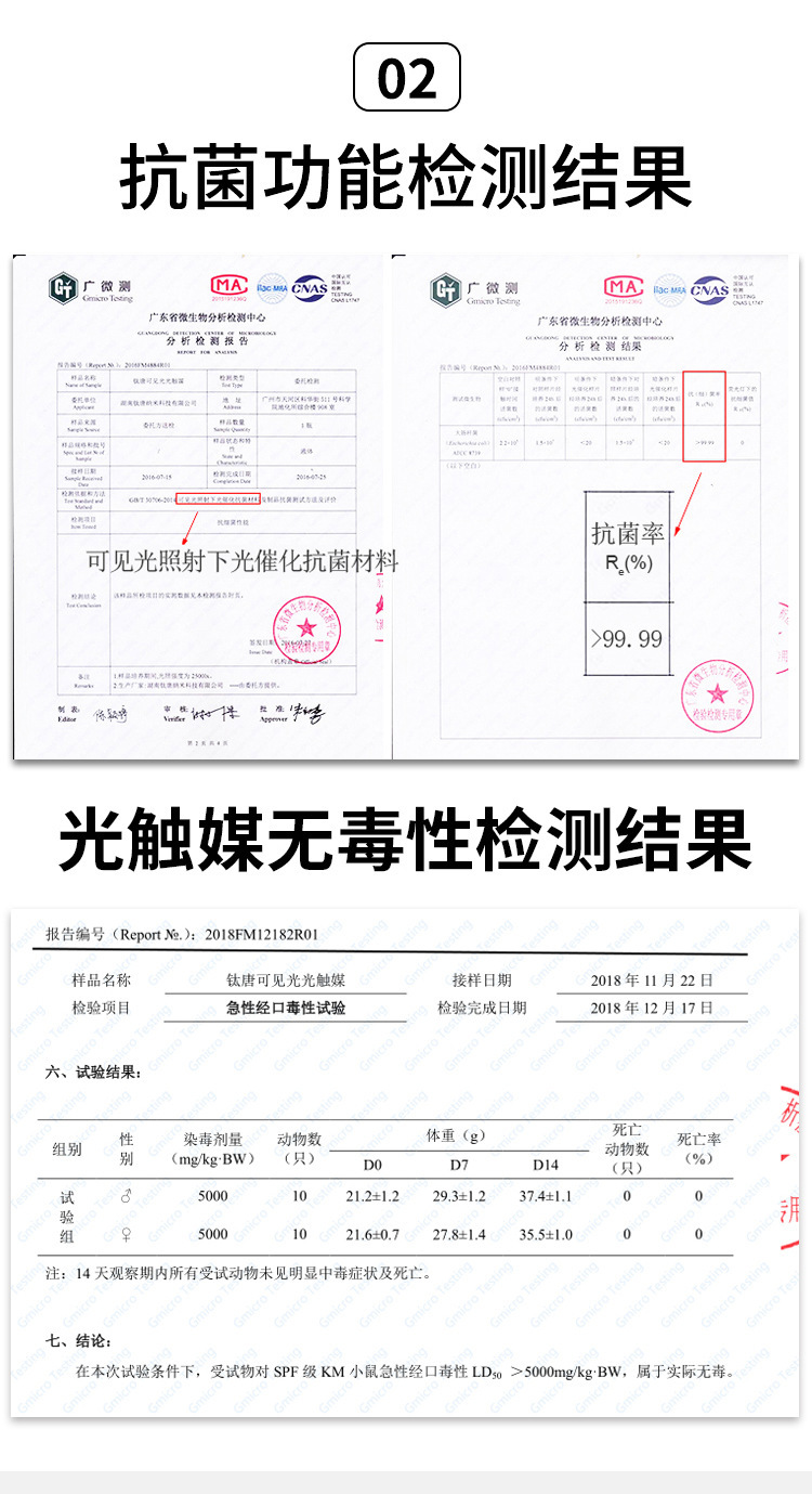 光触媒抗菌检测报告: 光触媒无毒检测报告: