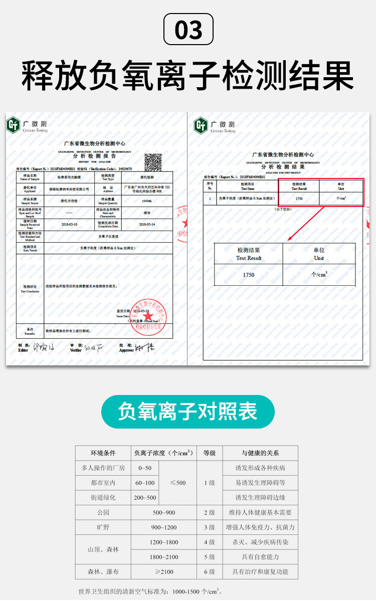 光触媒负氧离子检测报告: