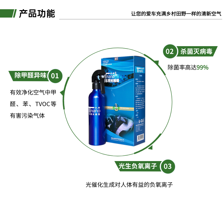 车用光触媒除甲醛去异味、抗菌、释放负氧离子功效演示视频