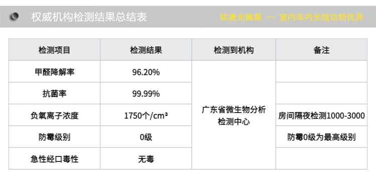 附:钛唐光触媒功能专业机构检测原件