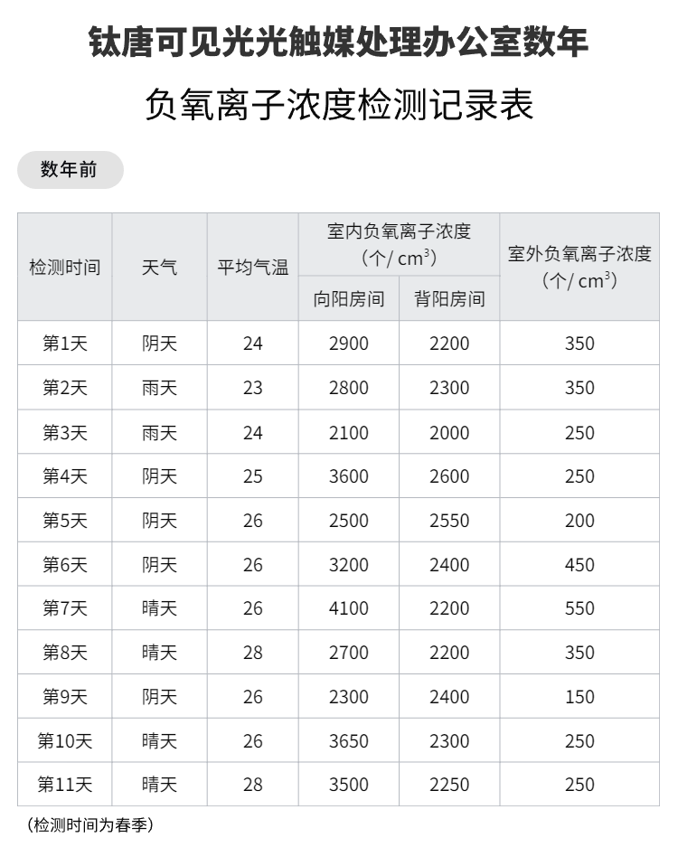 光触媒负氧离子检测报告: