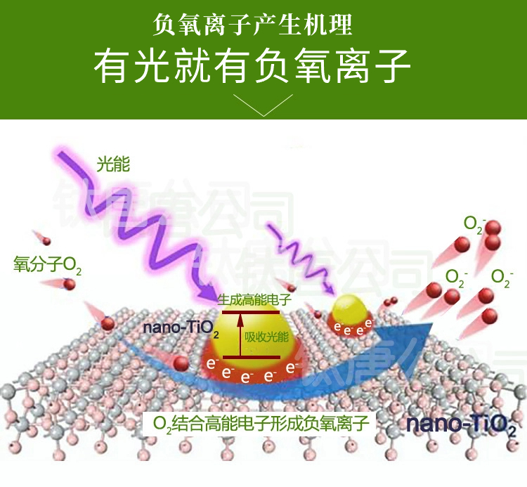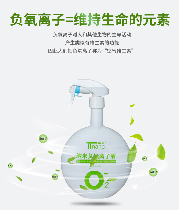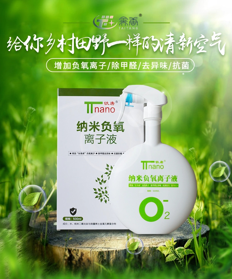 简介:钛唐光生负氧离子纳米喷涂剂喷洒或涂覆于基材表面,自然干燥形成纳米薄膜,在室(车)内光作用下产生负氧离子,浓度增加至1000-4000 个每立方厘米,有益于人体健康。