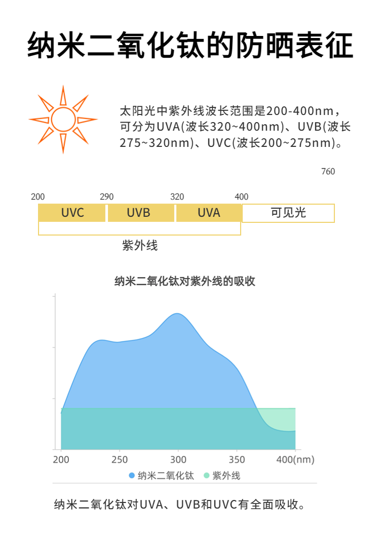 1、纳米二氧化胶体具有更高的比表面积和单分散性、更优异的抗UV防晒功能,更能发挥纳米材料的性能,应用更方便。具有轻盈、触感柔软、清爽、易扩散、已铺展的特点。