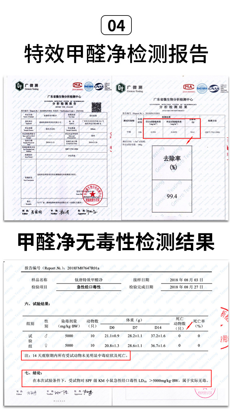 甲醛净去除甲醛检测报告: 甲醛净无毒检测报告: