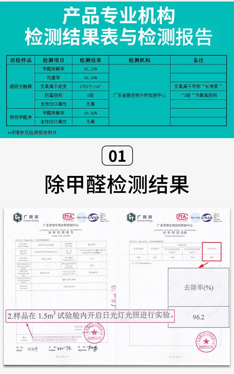 光触媒抗菌检测报告: 光触媒无毒检测报告: