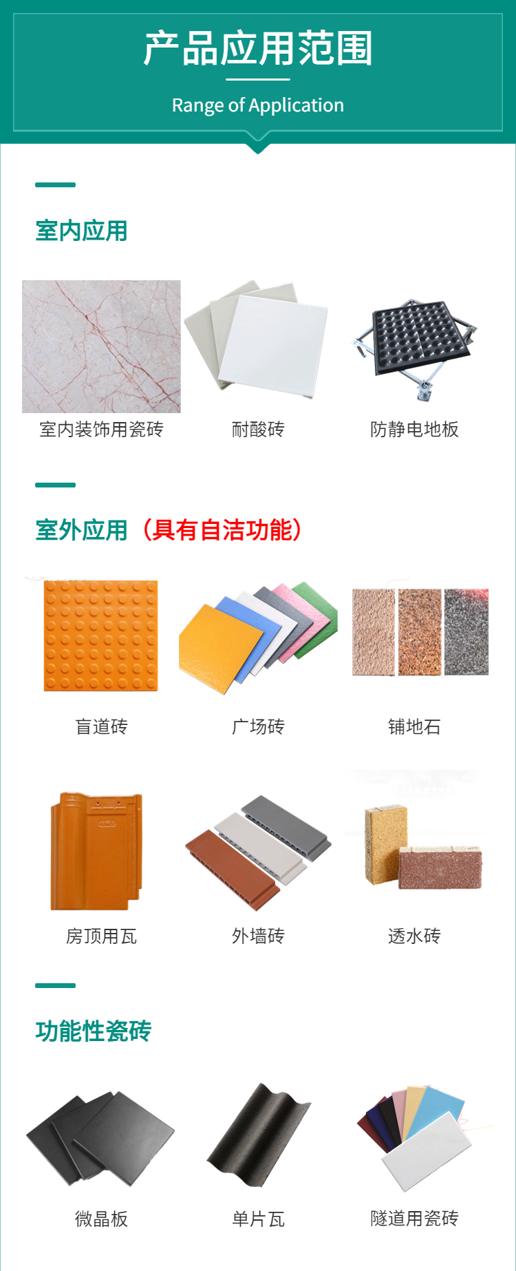 应用范围:陶瓷产品表面